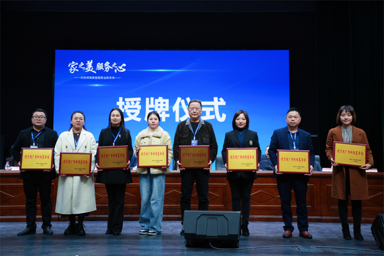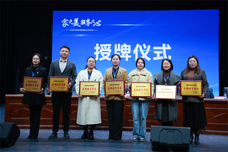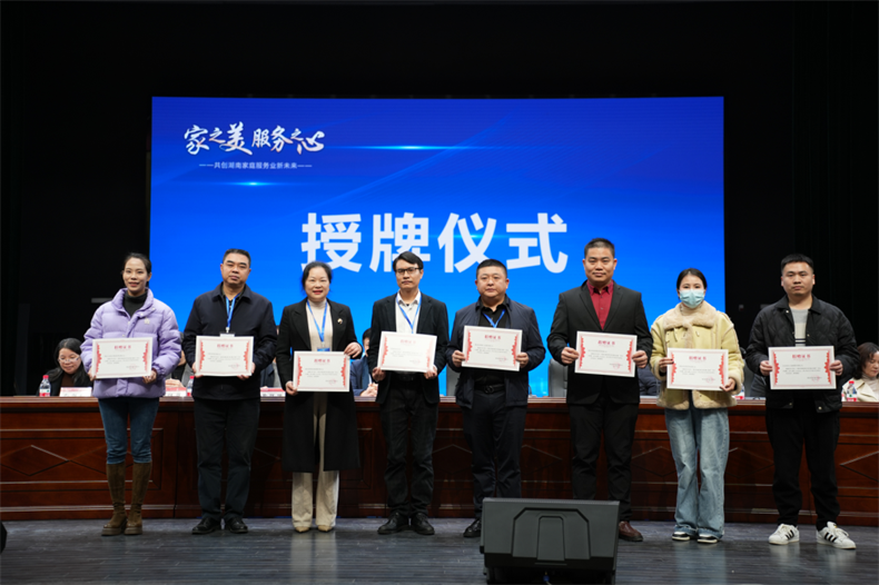 大会集中授予了多项荣誉。金职伟业被湖南省人力资源和社会保障厅现场授予“湖南省家政服务品牌建设省级台账品牌”牌匾,及“湖南省家庭服务职业培训基地”荣誉称号;此外,大会还现场颁发了湖南省“湘融湘爱 三湘邮情”杯家政服务业技能大赛系列奖项,其中,金职伟业王琳、李金灿分别获得家政培训赛项第二名、第五名,肖能获评保育员赛项第五名。同时,在大赛家政服务“三优”案例评选中,金职伟业王琳参选的家政培训服务案例获选为优质推广案例,李金灿参选的家政培训服务案例、肖能参选的保育师服务案例获选为优质潜质案例。