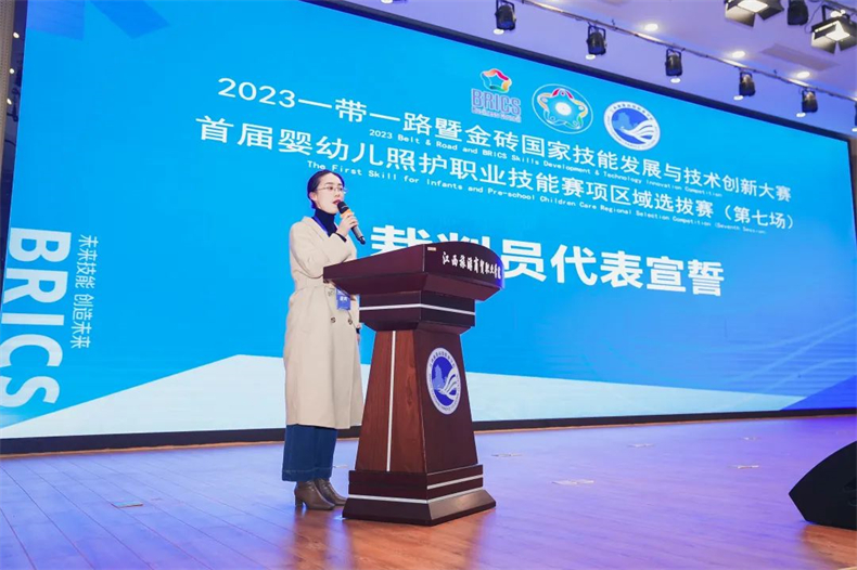 至此,2023一带一路暨金砖国家技能发展与技术创新大赛首届婴幼儿照护职业技能赛项区域选拔赛(第七场)正式开幕。
