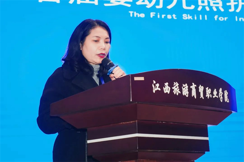 江西旅游商贸职业学院党委委员、副校长龙婷进行总结讲话。她总结了赛事背景、竞赛队伍、竞赛各阶段情况、赛事意义。她提到,大赛以“未来技能 创造未来”为愿景,已成功举办六届,也成为了推动金砖国家间教育合作、技能开发和人文交流活动的重要平台。“我校将充分发挥大赛的引领作用,不断深化三教改革,培养更多高素质人才,助推婴幼儿照护事业的高质量发展。”
