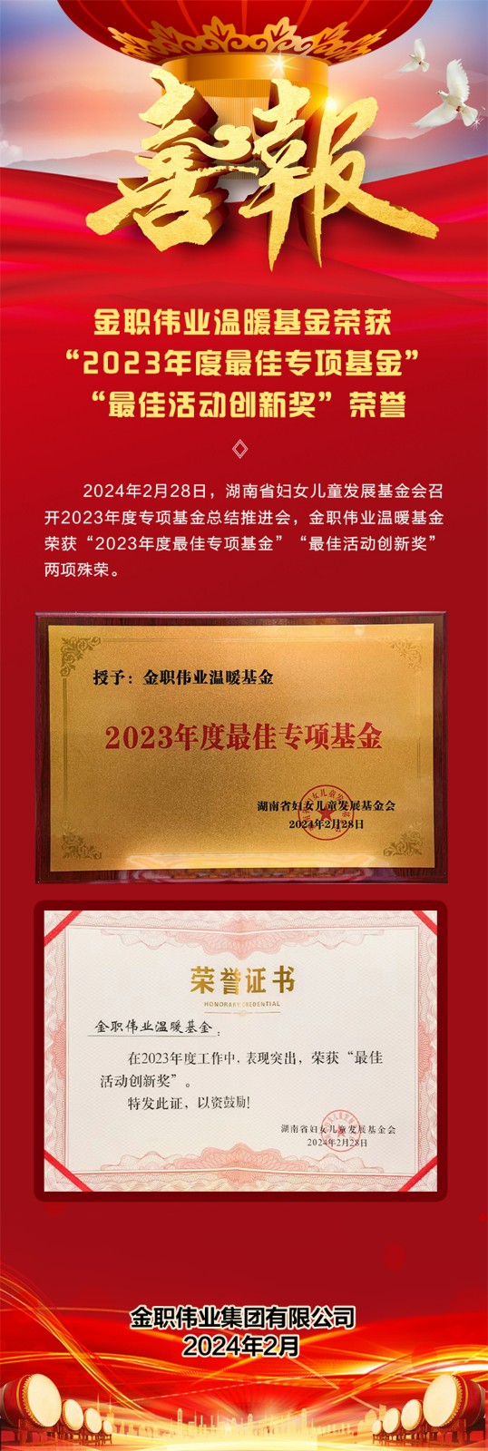 金职伟业温暖基金获2023年度最佳专项基金、最佳活动创新奖