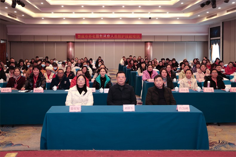 为进一步提升娄底市养老服务从业人员职业素质,提高养老服务专业技能和养老服务质量,推动娄底市养老服务高质量发展,2月27日-29日,娄底市养老服务从业人员照护技能培训成功举办,娄底市民政局党组成员、副局长刘雄军,娄底市民政局四级调研员曾劲刚出席开班仪式。此次培训由娄底市民政局主办、长沙市金职伟业职业培训学校承办,娄底市约150名养老服务从业人员参训。培训采取理论与实操相结合的方式进行,邀请了养老护理方面专家唐宜新、杨娟,就养老护理员职业概述及职业道德,老年人常见疾病及护理,老年人心理特点、情绪变化及安抚沟通,轮椅与拐杖使用等方面进行授课。