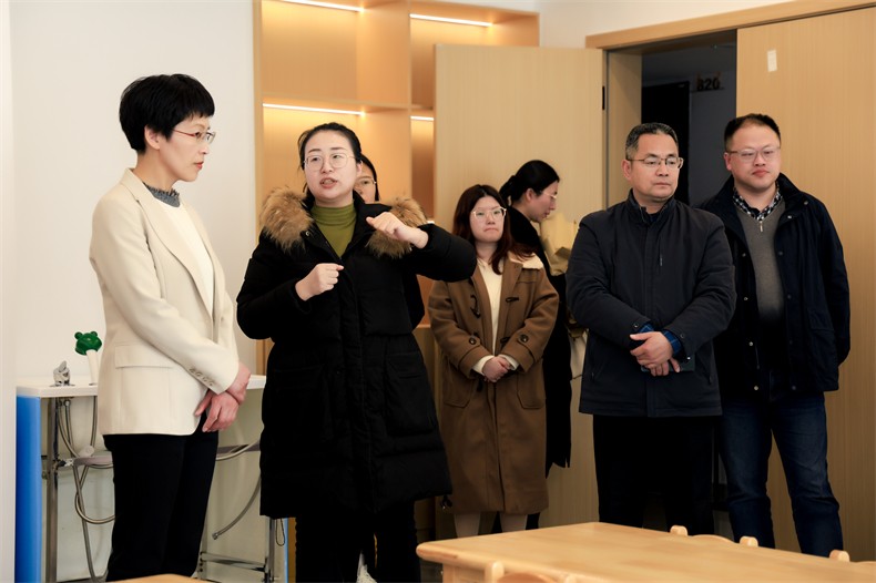 刘秀丽一行先实地参观了金职伟业集团运营中心、金职现代家庭服务产教融合实践中心、金职伟业旗下职业培训学校、产教融合型门店、托育综合服务中心、1+X幼儿照护实训基地,并通过听取金职伟业产业学院副院长刘伟的讲解,深入了解金职伟业产教融合建设成果,并给予充分肯定。