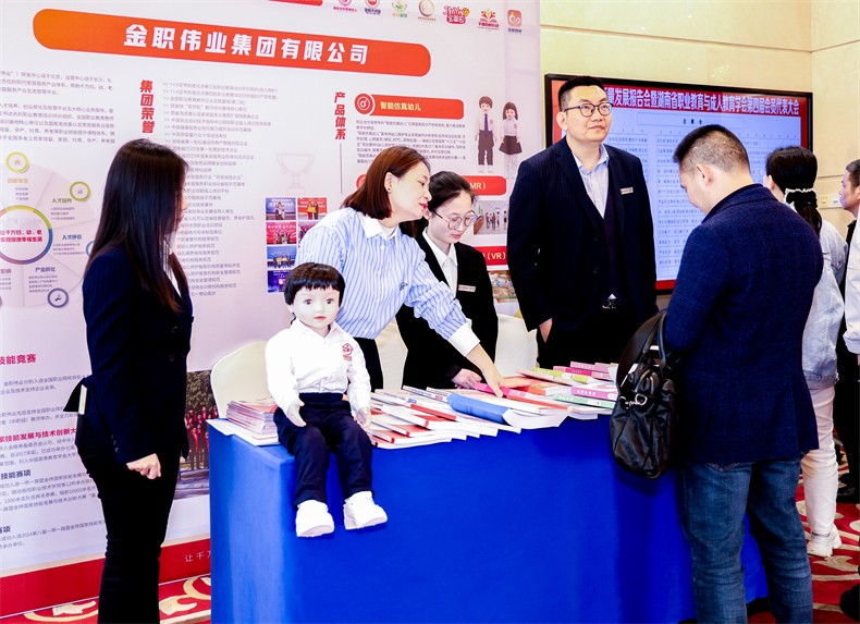会议期间,金职伟业产品展台吸引了多位行业大咖、领域专家及领导老师参观指导,在共同探讨职业教育高质量发展的同时,就金职伟业智能仿真幼儿、婴幼儿照护混合现实训练系统(MR)、婴幼儿照护职业技能虚拟仿真实训系统(VR)等产品及书证融通系列教材进行深入的沟通与交流。