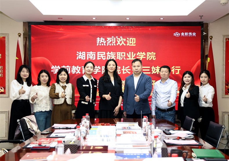 4月18日,湖南民族职业学院党委委员、学前教育学院院长曹三妹一行莅临金职伟业考察交流。金职伟业总经理潘建明、产业学院院长刘潇等热情接待。
