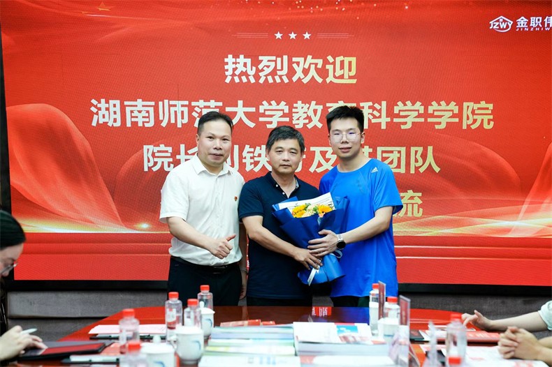 6月19日,湖南师范大学教育科学学院院长、博士生导师刘铁芳带领其博士生一行20余人赴金职伟业集团有限公司(以下简称“金职伟业”)开展交流活动,以人才赋能金职伟业的高质量发展。金职伟业董事长彭英,金职伟业总经理、湖南师范大学2023级教育领导与管理专业博士研究生潘建明等热情接待。