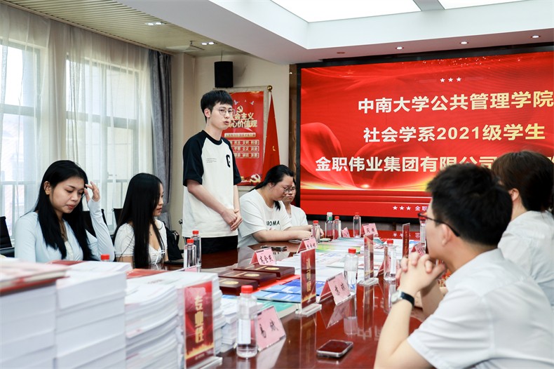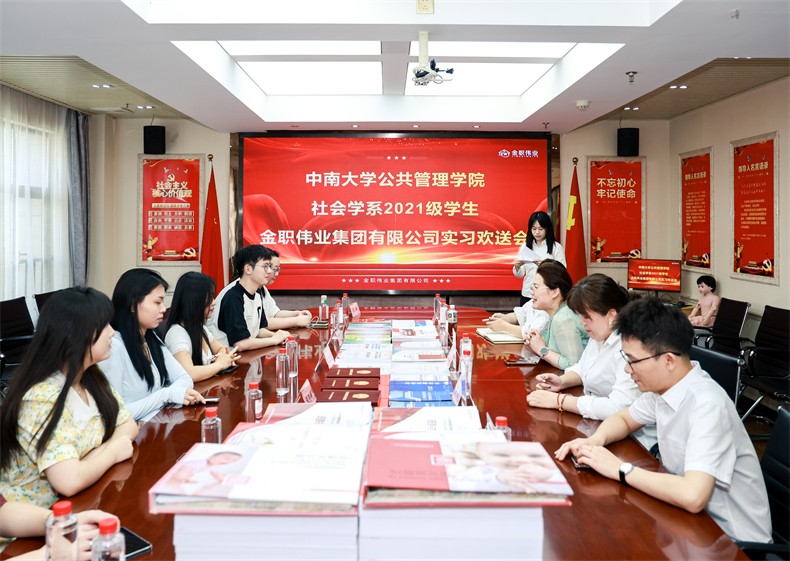 2024年7月10日,中南大学公共管理学院社会学系2021级学生专业实习欢送会在金职伟业集团有限公司举行。金职伟业董事长彭英及全体专业实习学生共同参与。