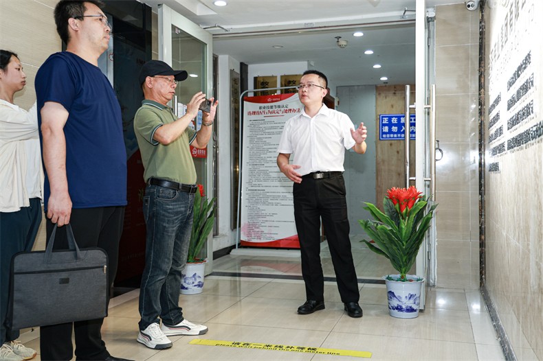 座谈会前,邱仁根一行在金职伟业院校事业部商务专员彭海的带领下参观了金职伟业现代家庭服务产教融合实践中心,通过听取彭海的介绍深入了解金职伟业校企合作、产教融合成果。
