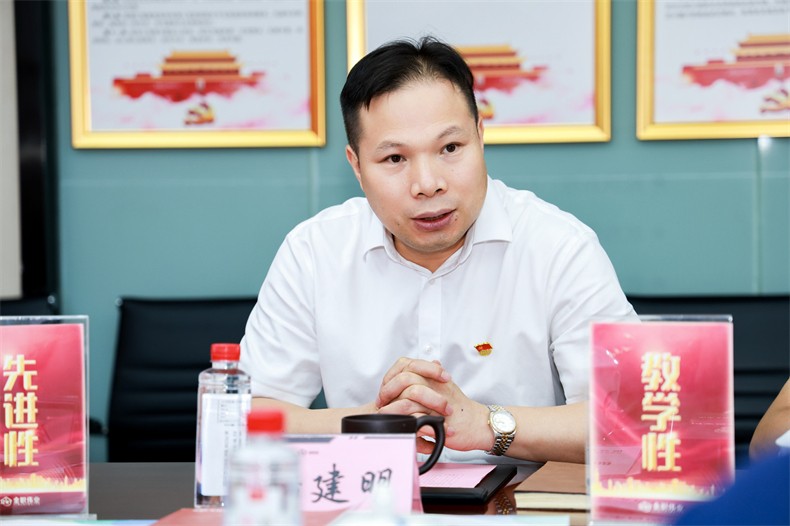 座谈会上,总经理潘建明对南昌职业大学教育学院院长邱仁根一行人的到来表示热烈欢迎,对学校一直以来的支持与肯定表示感谢,并从金职伟业“金证、金赛、金专、金课、金师、金地、金教材”的七金建设入手,全面介绍金职伟业在职业教育方面的取得发展成就。潘建明指出,金职伟业以大赛为依托,助力实现人才培养从技能型人才到创新型人才的飞跃;以证书为抓手,赋能高水平素质技能人才培养;以全国职业教育教师企业实践基地为抓手,助力“双师型”教师队伍建设,致力于推进赛证融通发展。