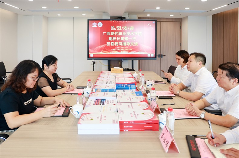 为进一步深化校企合作,8月30日,广西现代职业技术学院副校长、教师教育学院院长黄耀一行莅临金职伟业集团有限公司(以下简称“金职伟业”)考察交流,金职伟业总经理潘建明、产业学院院长刘潇等热情接待。