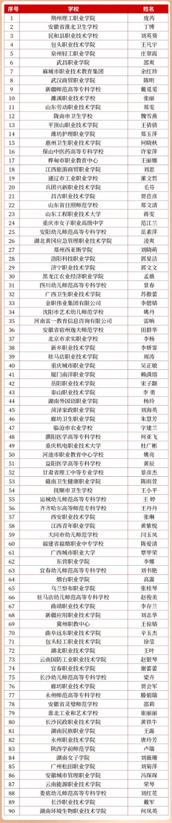 全国婴幼儿照护服务行业产教融合共同体优秀“金师”名单