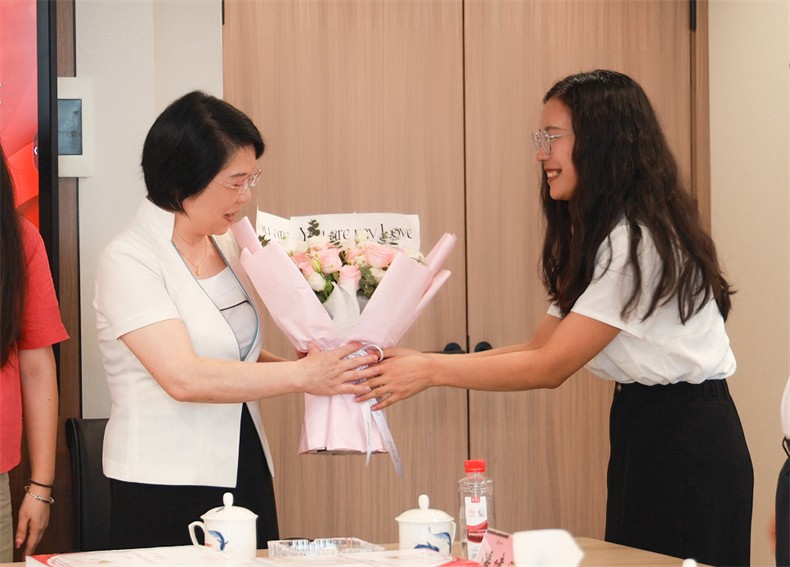 在拜师礼环节,徒弟们满含敬意地向谢玉琳教授献上热茶与鲜花。一来一回之间,师徒关系正式缔结。随后,由彭英董事长为许维副教授颁发了聘书。