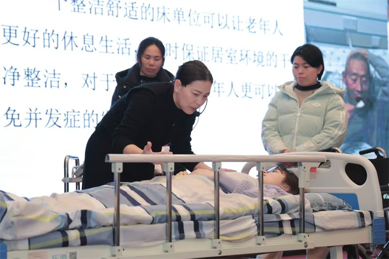 “最终让我坚定下来在养老护理行业深耕的是三年前,我公公得了尿毒症,由于没有专业的养老护理知识与照护技能,照护非常不到位,我公公就特别难受,我看了特别心疼。也是那时,我就决定今后专攻养老护理领域,传播更多专业的养老护理知识,让更多像我父亲这样的老年人,都能得到专业的照护、帮助以及关爱,有一个幸福、快乐的晚年生活。”