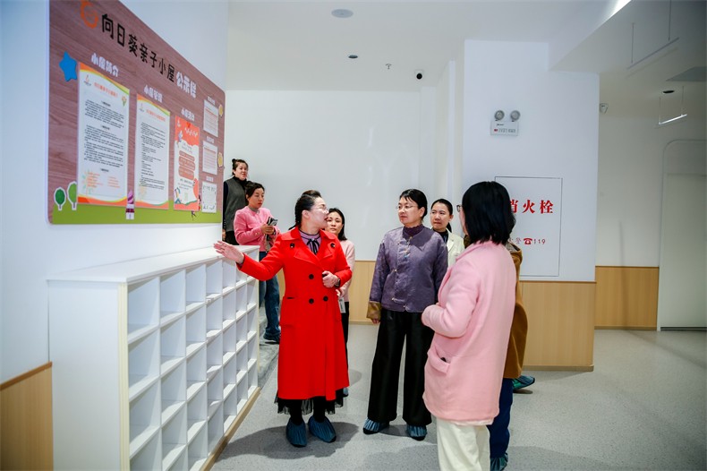 调研组一行实地考察了托育中心早发运动感统教室,绘本馆,医育结合测评室、医务室,开放式托育屋(向日葵亲子小屋)、母婴室等场所,全面了解中心托育环境,并对中心配套设施建设、周全细致的智慧托育服务给予了充分肯定与赞扬。