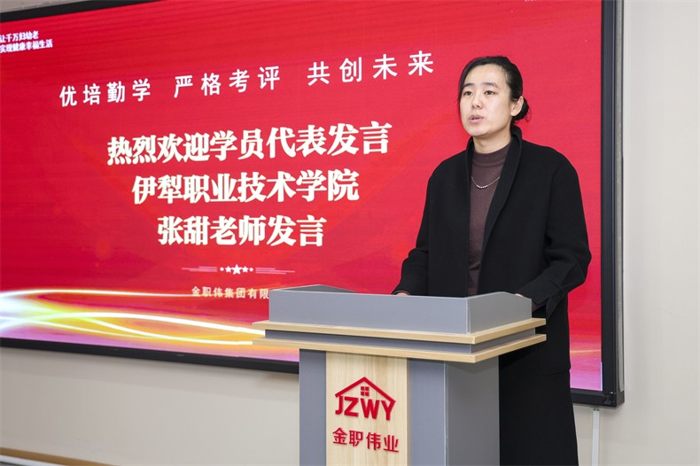 作为参培教师代表,伊犁职业技术学院张甜老师发表了感言。她对精心策划与组织此次培训的各级教育部门、金职伟业集团及其工作人员表达了感谢。张甜希望通过此次培训为个人的教学工作打下坚实基石,并承诺将以满腔的热情与严谨的态度投身于教育事业,成为1+X证书制度试点的积极传播者与忠实践行者。她以“路虽远行则将至,事虽难做则必成”为勉,鼓舞所有参训教师携手并进,为职业教育事业的蓬勃发展贡献力量,并预祝培训取得圆满成功。