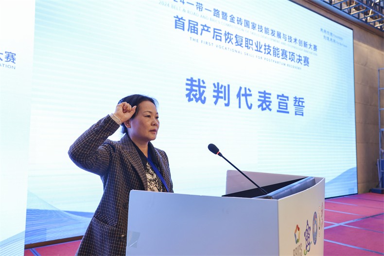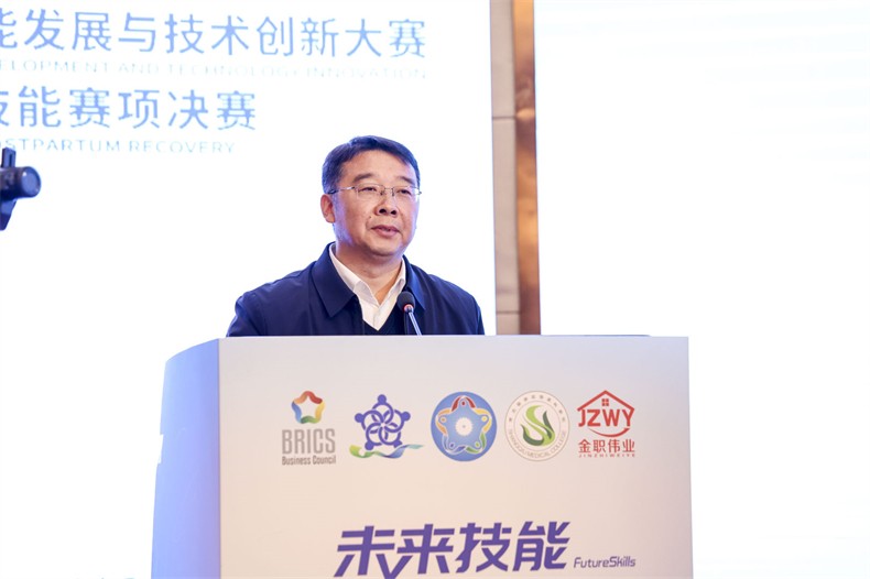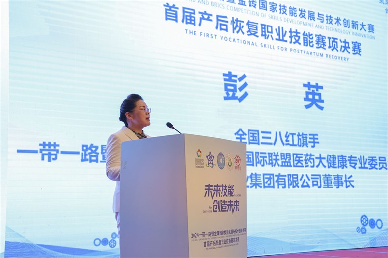 全国三八红旗手、一带一路暨金砖国家技能发展国际联盟医药大健康专业委员会副主任单位金职伟业集团有限公司董事长彭英介绍了金职伟业在赛项支持与承办、技能人才培训与考证、助力幼儿照护、产后恢复领域高质量发展的多项举措与取得成果。“让妈妈更幸福,宝宝更健康是金职伟业的企业愿景。接下来,金职伟业将继续探索产后恢复领域岗课赛证、综合育人模式,推动1+X产后恢复职业技能等级证书与赛项标准有机融合,充分发挥赛项举旗定向的作用,以赛促建、以赛促改、以赛促训、以赛促评,加快发展新质生产力,与院校携手,共筑产后恢复领域职业教育的新基地,培养大批产后恢复专业人才。”