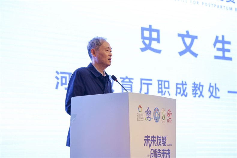 河南省教育厅职成教处一级调研员史文生介绍了商丘的历史文化底蕴与城市特色,阐述了技能竞赛开展的相关背景及其对于职业教育发展的重要意义。他提到,在职业教育法的背景下,职业教育活动成为职业教育高质量发展的重要助推器,此次金砖大赛首届产后恢复职业技能赛项在商丘医学高等专科学校开赛,正是贯彻落实职业教育法、党的二十届三中全会、全国教育大会精神的落地举措,将有力推动职业教育高质量发展,建设教育强国,助力中华民族伟大复兴。