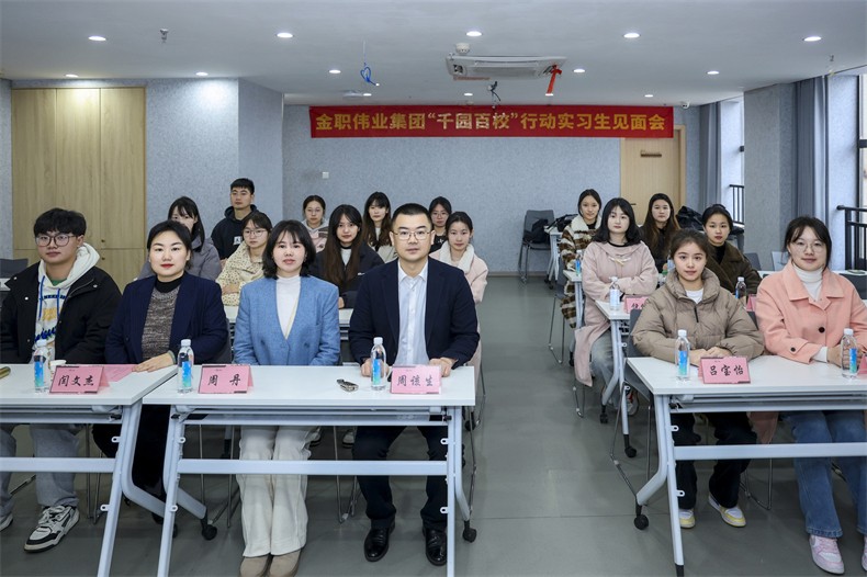 岁末已至,敬颂冬绥。12月30日,由金职伟业集团有限公司组织的九江职业大学实习生见面会成功举办!金职伟业集团有限公司(以下简称“金职伟业”)总经理助理兼院校事业部总监周该生、实体运营中心总监周丹、实体运营中心实习就业部主管闫文杰等出席活动。