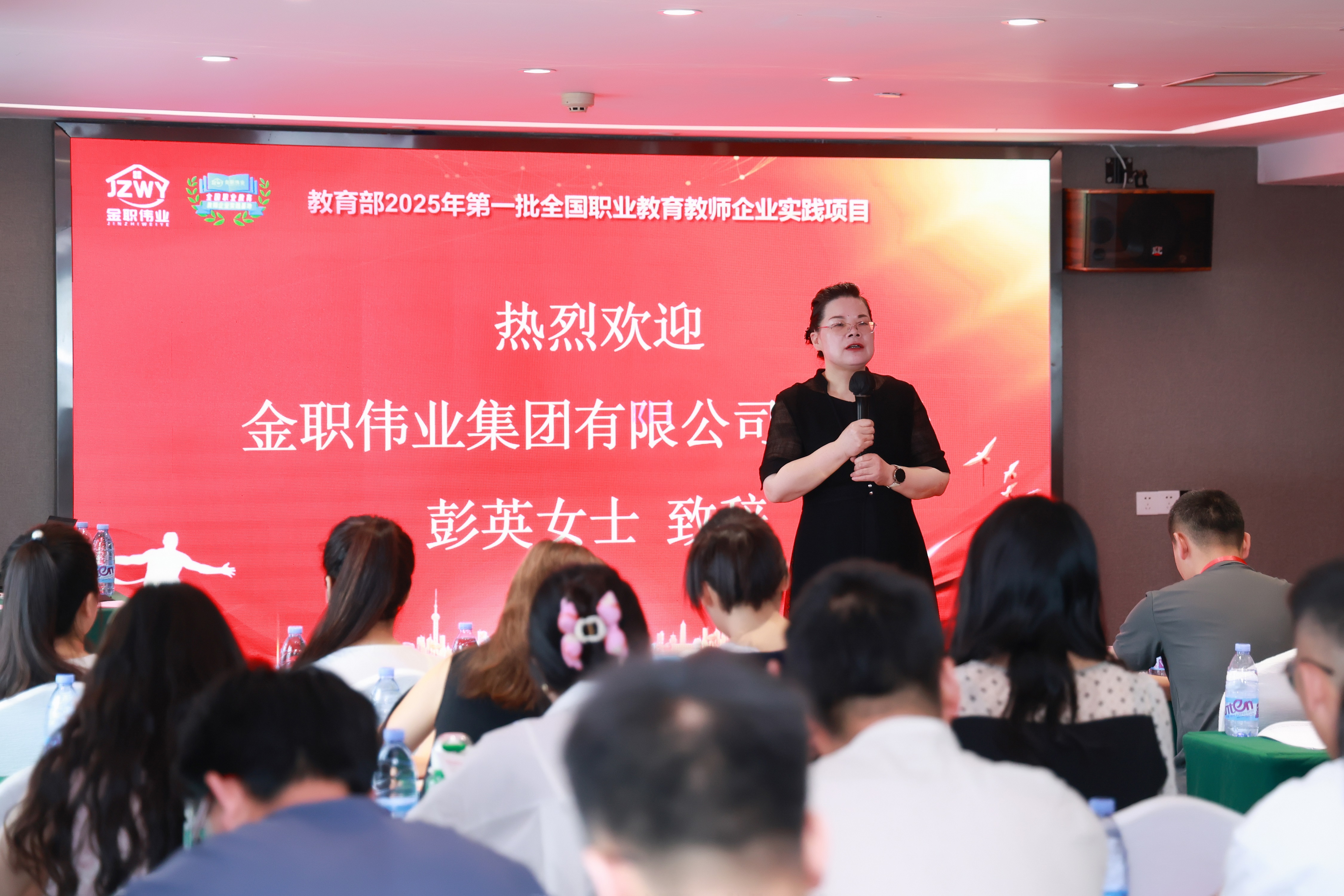 金职伟业集团有限公司董事长彭英发表致辞,她强调,本次培训是国家职业教育教师企业实践项目的重要组成部分,旨在深化产教融合,提升职业院校教师在婴幼儿照护领域的实践教学能力。她希望参训教师能够学以致用,推动婴幼儿照护行业的高质量发展。