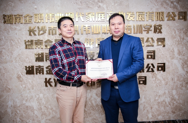 随后,方威教授授予金职伟业“中南林业科技大学商学院产学研实习基地”牌匾,并为潘建明总裁颁发“中南林业科技大学商学院创新创业导师”聘书。双方本着资源共享、优势互补、互惠互利、共同发展的原则,正式签署“校企产学研合作协议”。