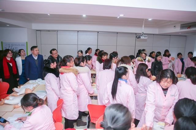 调研组一行抵达金职伟业后,在金职伟业董事长彭英、总裁潘建明的陪同下,依次参观了金职伟业职业培训学校、金婴丽人母婴体验馆,实地考察了金职伟业开展的各项业务工作。张翼副主任对金职伟业在母婴职业培训、母婴健康服务、公益扶贫、就业安置方面做出的成绩给予了充分肯定。