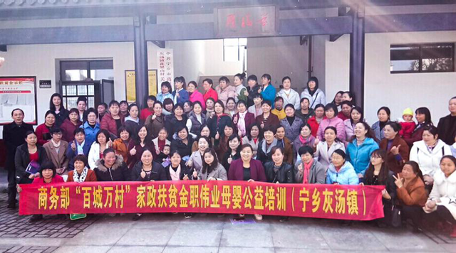 3月12日,宁乡市灰汤镇花果山村、新风村精准扶贫母婴公益课隆重开班。本次培训是在湖南省家庭服务业协会支持下的公益扶贫项目,由长沙金职伟业职业培训学校派遣金牌教师进行授课。八十多名当地女性参与学习,其中建档立卡贫困户占一半以上,通过学习考核以后,学员可以获得育婴师职业资格证,取得月嫂上岗资格。