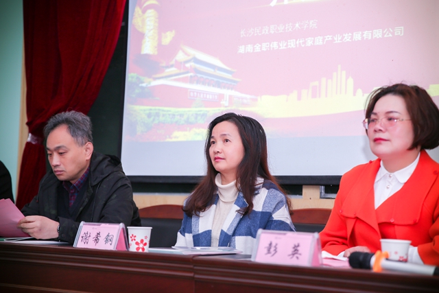 长沙民政职业技术学院副校长谢希钢、民政与社会工作学院院长周涛、培训部主任徐怀,湖南省育婴师高级考评员敬晓青,湖南金职伟业现代家庭产业发展有限公司董事长彭英、总经理潘建明,长沙市金职伟业职业培训学校校长黄娟、月嫂讲师唐咏平等出席了开班典礼。