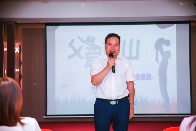 在一阵祝福结束后,金职伟业总裁也为大家分享了他的父亲。他表示如今的成功离不开父亲的严厉教导,是父亲督促他学习,教他如何成为一名正直的人,也因此他可以走出大山来到长沙读书,成为一名老师甚至拥有一份成功的事业。因此他希望学员们能够常怀感恩的心,感恩父母的养育之恩,多多孝敬父母。接着已为人父的他也分享了如何成为一名好父亲,他说因为工作原因可能陪伴孩子的时间很少,但他会坚持送孩子上学,无论前一天有多累,他会利用这十五分钟的时间与孩子交流沟通,孩子感受到了爱,自然也不会吝啬表达,在生活中听到最多的话就是“爸爸我爱你。”最后,他为所有学员们的父亲送上祝福,希望他们都能身体健康,也希望所有的学员能够事业有成。