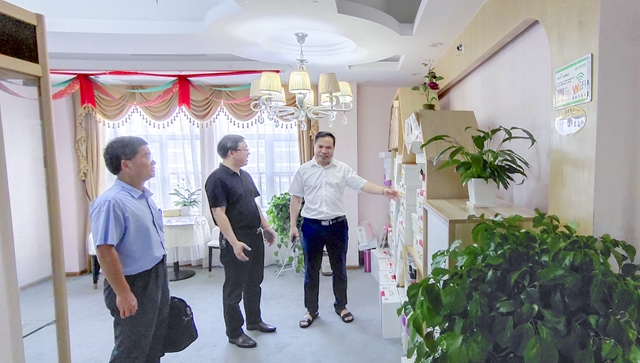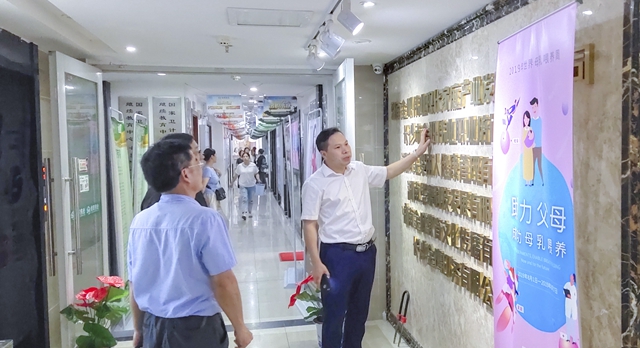 在公司布置一新的党建活动室、办公区域、培训学校、电子商务平台、金婴丽人母婴体验馆等现场。潘建明总裁向领导详细介绍了相关情况,并回答了领导提出的相关问题。