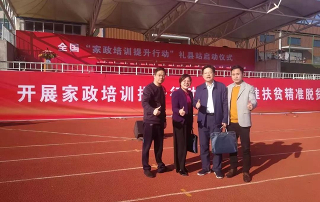 10月16日下午,2019年-2020年全国家政培训提升行动礼县站活动在甘肃陇南市礼县职业中等专业学校启动。本次活动为贯彻落实《国务院办公厅关于促进家政服务业提质扩容的意见》,提高家政培训水平,推动家政服务高质量发展。湖南金职伟业集团董事长彭英作为湖南家政企业代表出席了启动仪式。