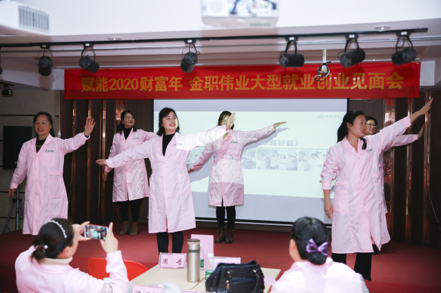 上午9时,12月大型就业创业见面会正式开始。主持人首先介绍了莅临此次会议的各位领导与来宾,随后金职伟业招商、招生团队带来了活力四射的团队展示,将全场的火热氛围烘托到极致。