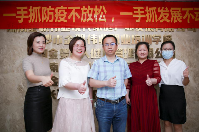 通过深入的交流研讨,董事长彭英对政府寄予的高度厚望表示感谢,并表示:金职伟业作为长沙家庭服务职业技能人才的孵化基地,在疫情期间,认真贯彻落实复工复产工作调度会议精神,在做好科学防控疫情的同时,全面推动公司各项目稳步开展,在未来的工作中将继续秉承“让千万妇幼老实现健康幸福生活”的企业使命,积极进取,立志成为社会和国家最值得信赖的现代家庭服务企业。紧跟国家宏观政策,发挥“培训一体化,服务一体化,人才输出一体化,加盟标准一体化”的服务优势,为每一位学员的未来发展提供保障和指导帮助,全面推进职业技能提升,引领更多的劳动群众实现稳定就业,鼓励和带动创业,为国家培养更多的家庭职业技能型人才。
