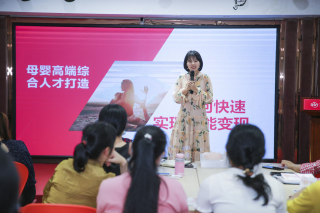 紧接着,金职伟业招商运营总监周丹为大家分享了《母婴技能职业规划》课程,她首先带来了金婴丽人产后康复中心的系统介绍,以“母婴高端综合人才打造、如何实现技能变现”为主线,围绕“运营支持、项目支持、产品支持、管理培训支持、技术培训支持”五大板块详细剖析创业需求,讲解轻松有趣、深入浅出,干货满满。