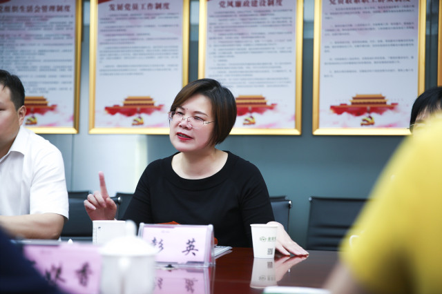 随后,卢妹香副主席主持召开交流座谈会。座谈会上,外联部经理苏琼就公司发展战略、运营模式及助力女性就业创业工作开展情况进行了具体汇报。