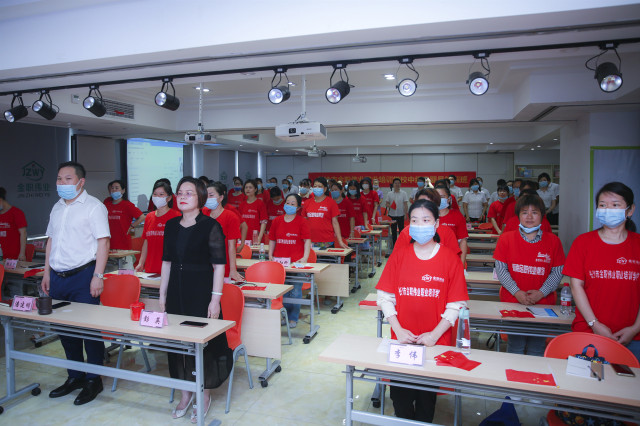 活动伊始,在董事长彭英、总裁潘建明的带领下,金职伟业全体员工及此次班级的全体学员以激昂的声音、饱满的热情,唱响《没有共产党就没有新中国》,彰显了金职人浓厚的爱党爱国情怀,以实际行动迎接中国共产党九十九周年盛世华诞,致敬伟大的中国共产党。
