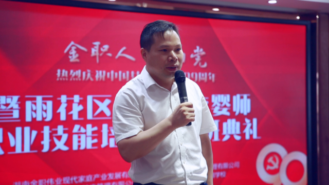 为庆祝中国共产党建党99周年,回顾党的奋斗历史,讴歌党的光辉业绩,继承和发扬党的光荣传统和优良作风,金职伟业特此举办献礼建党99周年活动。金职伟业董事长彭英、总裁潘建明等出席并发言。当天,在金职伟业创业孵化基地同时举行了雨花区第四期育婴师职业技能培训班开班典礼。