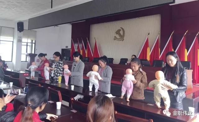 近百名学员参加了本次公益培训,金职伟业母婴保健高级讲师鲁赛艳老师担任了本次培训的主讲老师,为学员们带来专业理论知识与实践操作相结合的精彩母婴护理课程。金职伟业科学的课程安排,专业的师资阵容,获得了横市镇政府领导及学员们的一致认可和好评。
