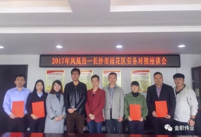 随后,潘建明总裁又马不停蹄赶往湘西凤凰县,参加2017年凤凰县与雨花区劳务对接座谈会。会上,潘总代表金职伟业与凤凰县人社局签订了《凤凰县精准脱贫劳务合作协议》,承诺帮助凤凰县农村劳动力特别是贫困劳动力解决就业难题。