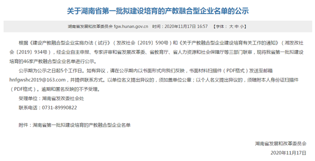 据悉,为建设培育主动推进工业转型升级的优质企业,现代农业、智能制造、高端装备、新一代信息技术等急需产业领域企业,以及养老、家政、托幼、健康等社会领域龙头企业,经企业自主申报、专家评审和省发展改革委、省教育厅、省人力资源和社会保障厅等三部门联审,正式公布湖南省第一批拟建设培育的46家产教融合型企业名单,金职伟业成功入选湖南省第一批拟建设培育产教融合型企业。