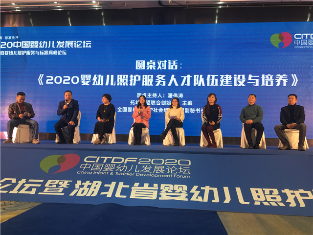 随后的圆桌会议,金职伟业集团总经理潘建明还作为对话嘉宾,与其他嘉宾一道围绕《2020教育部1+x婴幼儿照护服务人才队伍建设与培养》进行了深入的讨论。圆桌会议各位专家分别就托育人才的质量和数量发表了自己的意见和看法。潘建明总经理向与会人员介绍了1+X幼儿照护职业技能等级证书工作开展的情况,对课程与考评标准的设定、师资培训的情况以及3年向行业输送人才的目标进行了报告,所有人备受鼓舞。