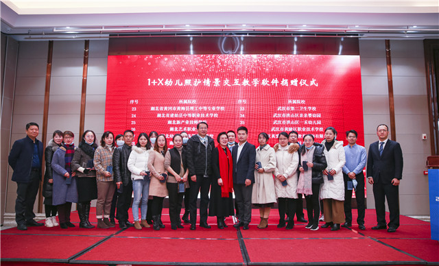 接着,论坛举行“1+X幼儿照护”情景交互教学软件捐赠仪式。据悉,幼儿照护情景交互教学软件由金职伟业牵头,联合武汉湾流科技共同开发,其兼具情景性、互动性为一体,教师可以使用该教学软件作为课堂教学的有益补充。现场包括武汉城市职业学院、湖北幼儿师范高等专科学校、襄阳职业技术学院在内的60余家单位接受赠与。