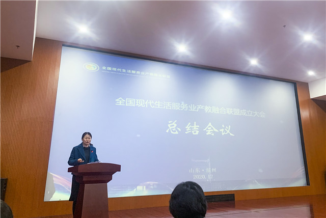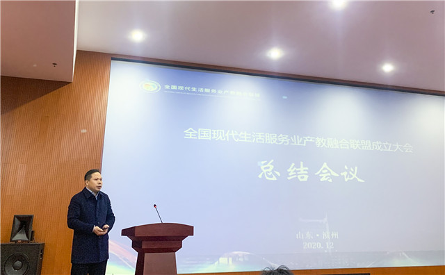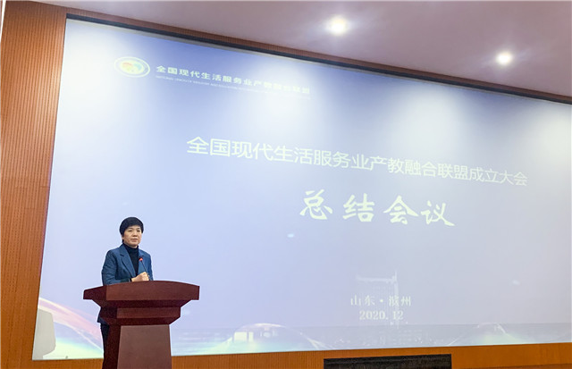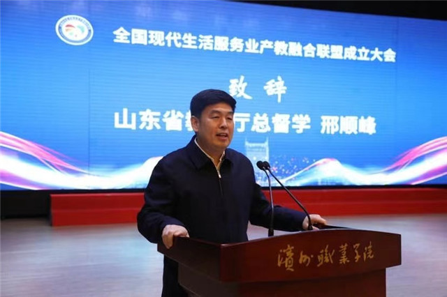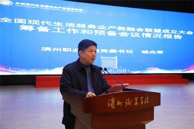 中国服务贸易协会首席专家、中国国际贸易促进委员会原副会长张伟,山东省教育厅总督学邢顺峰,教育部职业教育与成人教育司教学与质量处处长黄辉进行讲话。滨州职业学院党委书记杨光军作筹备工作和预备会议情况报告。在各位领导的共同祝贺下,全国现代生活服务业产教融合联盟正式成立。