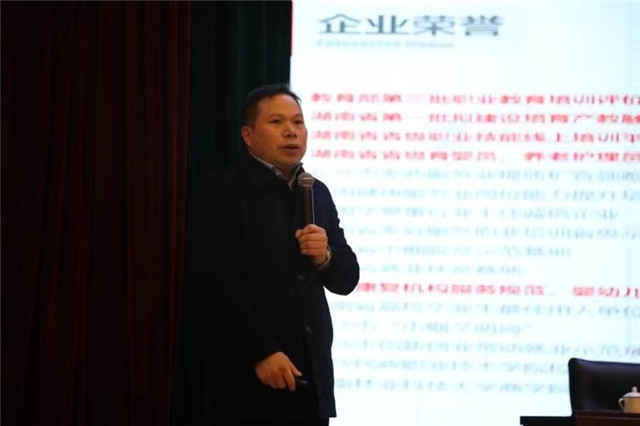 湖南金职伟业集团总经理潘建明就《1+X婴幼儿照护人才培养新思路》进行主题报告。他向与会人员介绍了1+X幼儿照护职业技能等级证书工作开展的情况,课程与考评标准的设定、师资培训的情况以及3年向行业输送人才的目标,得到了现场专家的一致认可。他提到,金职伟业作为教育部第三批1+x幼儿照护职业技能等级证书试点推进单位,在1+x婴幼儿照护人才培养方面做出了诸多尝试,也收获了不菲成绩。自2020年起,完成了近27期累计5000人次的师资与考评员培训、考务技术员培训和督导员培训,成立了400家幼儿照护考评站点。潘建明表示很期待有更多的行业专家、学者、有志之士加入这个朝阳行业,为实现100万婴幼儿照护人才的培养目标而努力,携手共创1+x幼儿照护证书的美好未来。