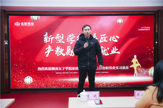 长沙市雨花区就业服务中心常务副主任黄斌提到,他很看好此次金职伟业与湖南女子学院深入校企合作的活动,也希望之后能够继续开展此类活动,让更多的优秀毕业生尽快适应社会,掌握就业本领,为家政服务业的蓬勃发展贡献力量。