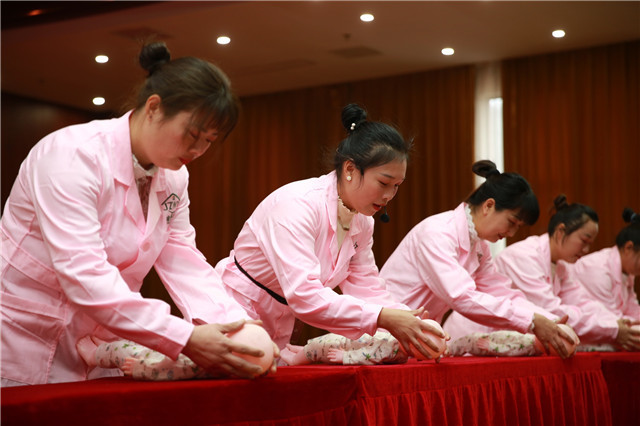 活动伊始,来自金职伟业茶陵教学站点的优秀学员们带来了精彩的技能展示《婴儿抚触操》,朗朗上口的儿歌与熟练轻巧的手法相得益彰,赢得了与会嘉宾的热烈掌声。
