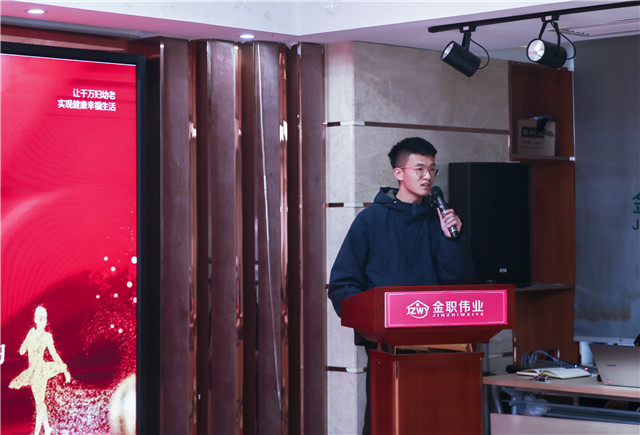 长沙民政职业技术学院家政专业学子王云浩作为优秀学生代表进行发言。他首先对金职伟业及长沙民政职业技术学院提供的实习机会表示由衷地感谢,并代表全体学生作出保证,在见习期间一定会多听多看、积极请教、听从安排、遵守制度。