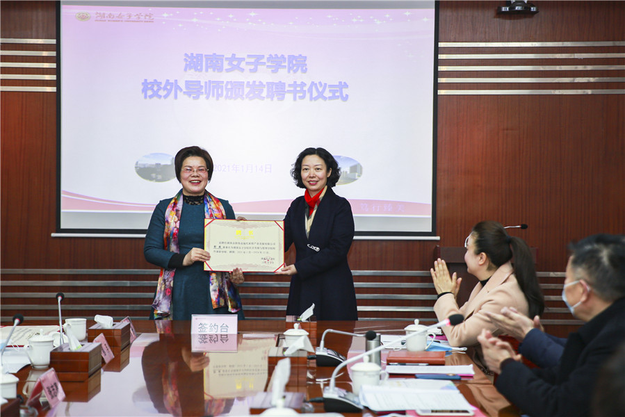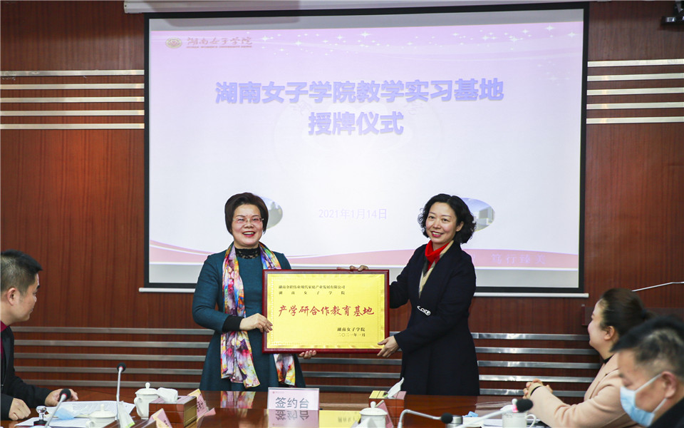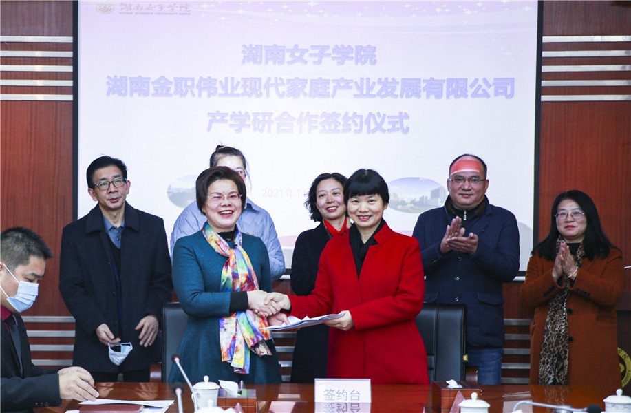 1月14日上午,湖南女子学院产学研合作签约仪式在湖南女子学院办公楼内隆重举行。金职伟业与湖南女子学院共同签署“产学研合作协议”,金职伟业正式被授牌为“产学研合作教育基地”,湖南金职伟业集团董事长彭英被聘为“湖南女子学院校外兼职导师”。