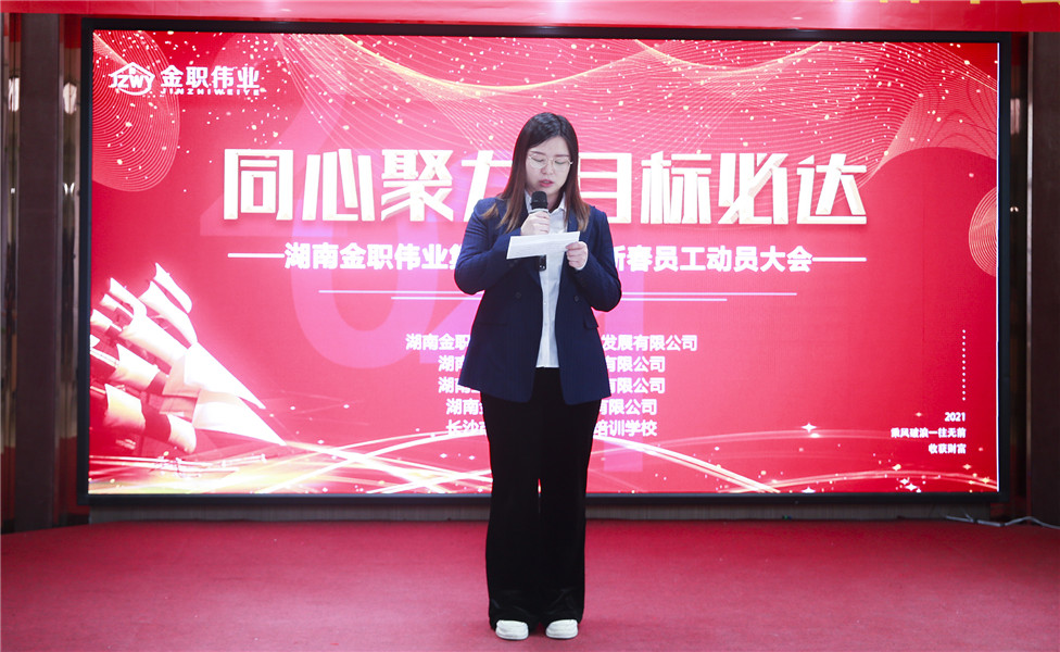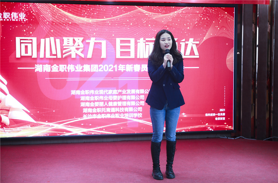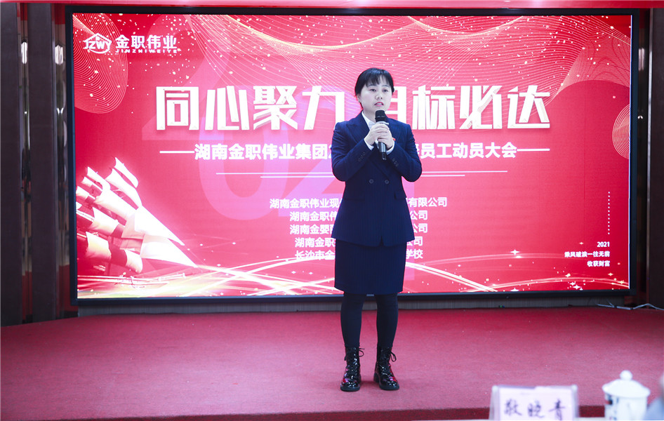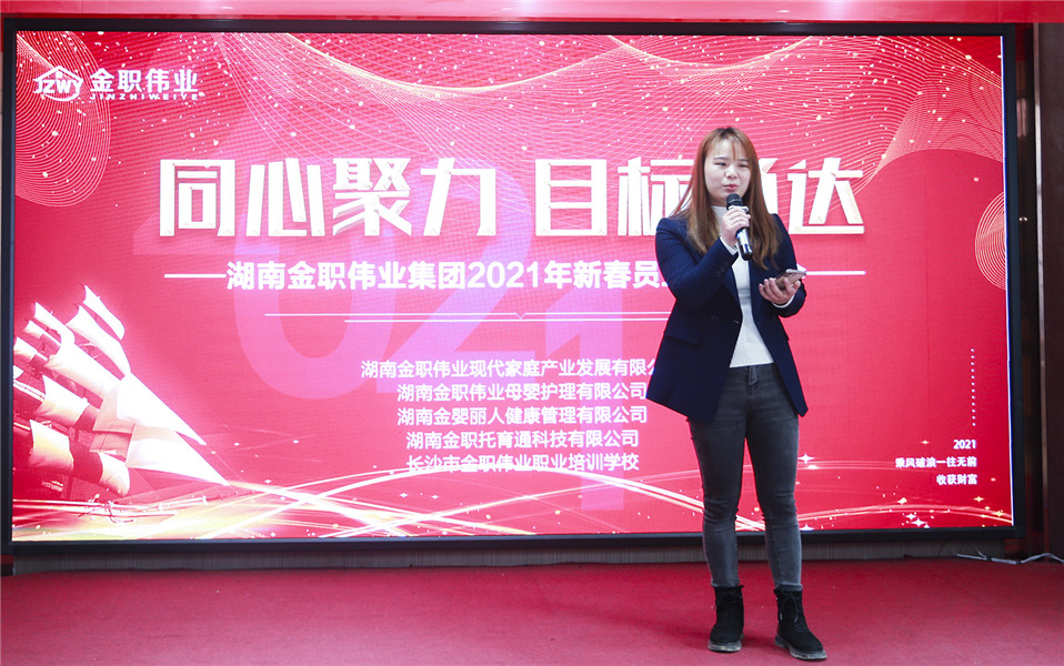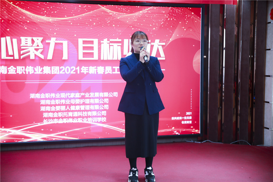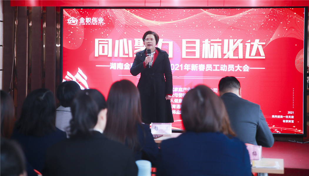 会上,金职伟业董事长彭英首先为全体金职人送上了新年祝福。她表示,2021年是金职伟业第二个“五年计划”的第一年,她希望全体员工能够紧跟公司的发展步伐,在新的一年,发扬牛的精神,扎实推动金职伟业的蓬勃发展。