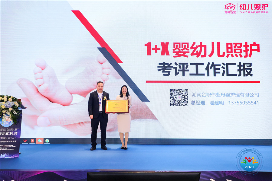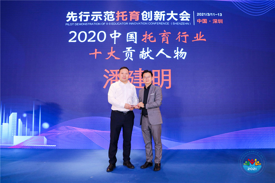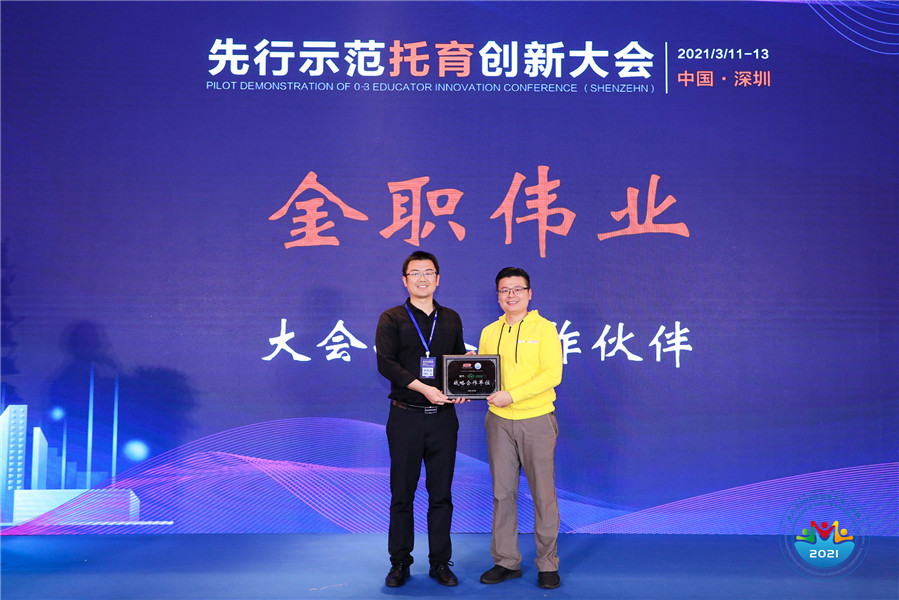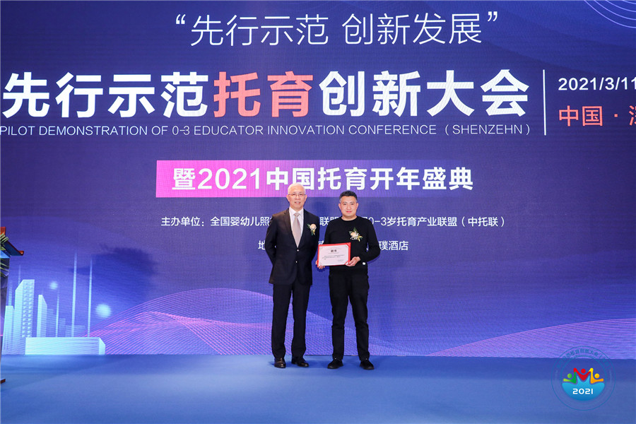 为贯彻落实国务院办公厅发布的《关于促进3岁以下婴幼儿照护服务发展的指导意见》,推动中国婴幼儿照护行业的创新发展,缓解行业专业人才紧缺现象,加速产业链的形成,“先行示范托育创新大会(深圳)暨2021中国托育开年盛典”于3月11日-13日在深圳隆重举行,金职伟业总经理潘建明受邀出席大会并发表讲话。大会上,金职伟业荣膺“先行示范托育创新大会战略合作单位”,总经理潘建明荣获“2020中国托育行业十大贡献人物”称号。