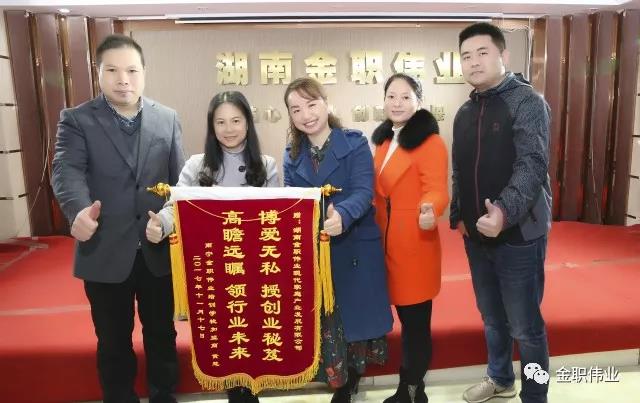 两天的培训充实且短暂,结业典礼如期举行。学员们依次分享了学习收获,并纷纷点赞金职伟业及授课老师们,不少学员表示,希望进一步向老师们请教学习,期待金职伟业商学院下一期培训尽快开班。典礼上,金职伟业南宁分校加盟商黄慧也分享自己的学习感言,作为优秀加盟商代表,黄慧感谢与激动之情溢于言表,现场她还为公司送上锦旗,表达感恩之情。