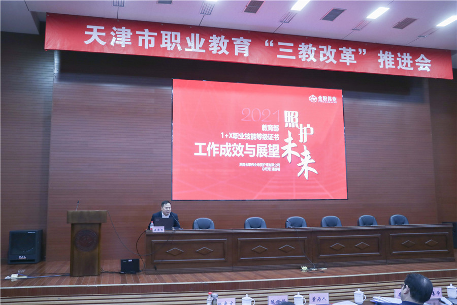 为贯彻落实国家职教大会会议精神,落实《国家职业教育改革实施方案》和《职业教育提质培优行动计划(2020-2023年)》文件要求,深入推进天津职业教育“标杆”高地建设,4月16日,天津市职业教育三教改革推进会在天津医学高等专科学校学术报告厅隆重举行,金职伟业总经理潘建明受邀参会。